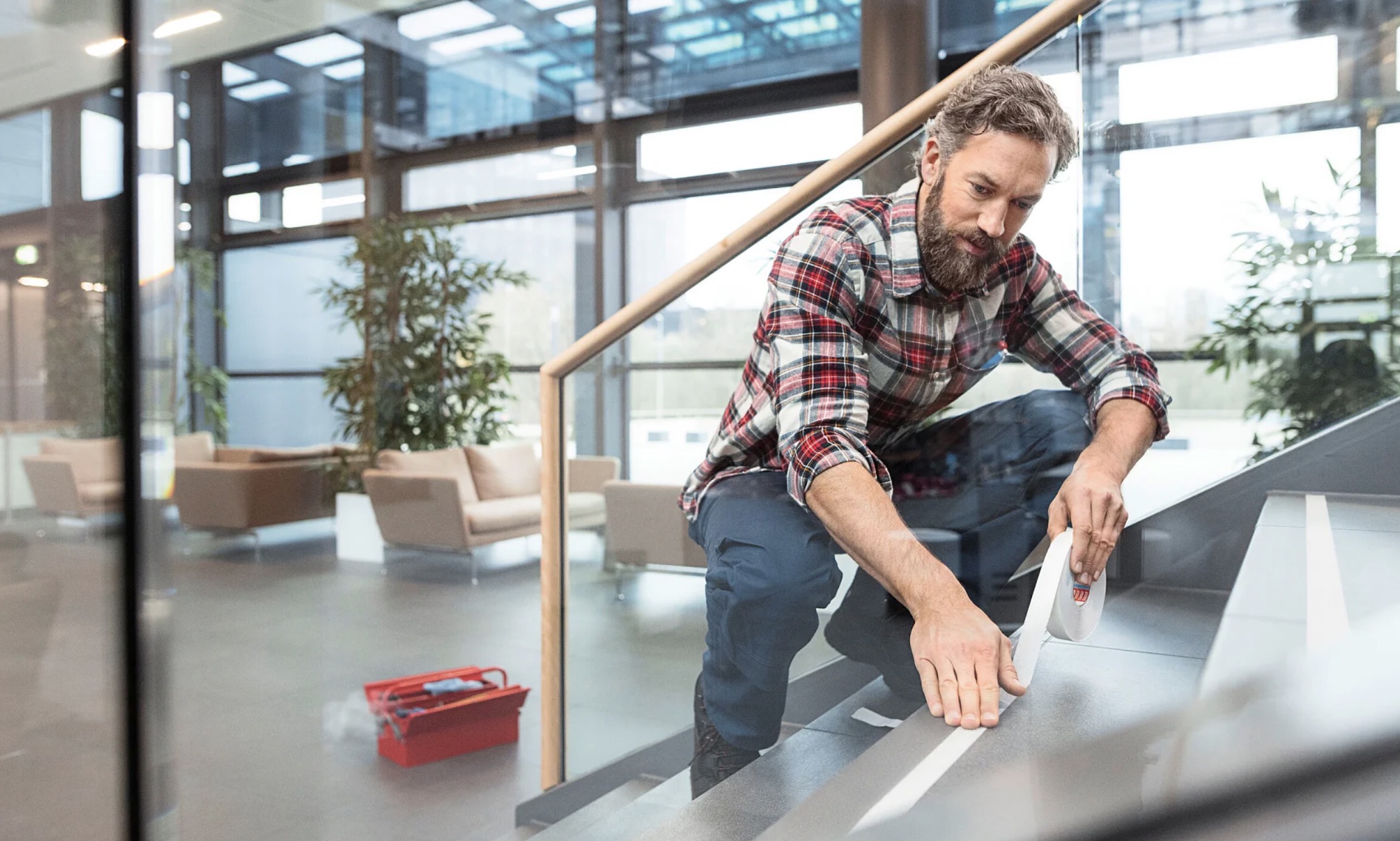 Grâce à sa masse adhésive solide et durable, le ruban tesa® maintient un effet anti-dérapant élevé pendant 1 à 2 ans, même sous un usage normal et fréquent. En outre, son excellent pouvoir adhésif s’adapte parfaitement aux surfaces exigeantes, telles que les sols d’usines et les unités de production. De surcroît, les adhésifs se déchirent facilement à la main et ne se rétractent pas après application, garantissant ainsi une mise en place simple et efficace.